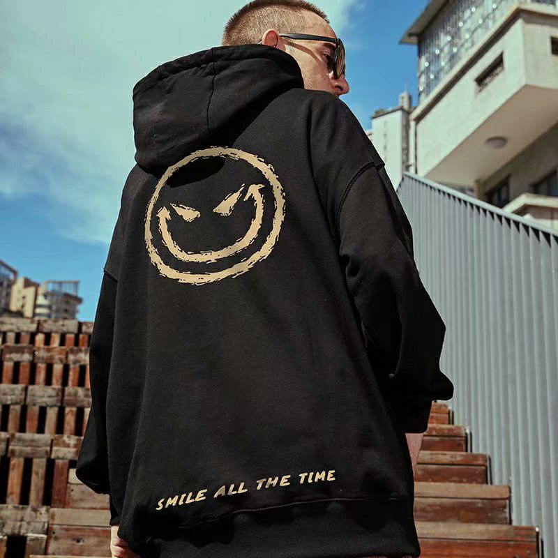 Pakaian Pria > Hoodie & Sweatshirt > Hoodie > Hoodie Harajuku SMILE ALL THE TIME (S - 6XL) Jaket Jumper Hip Hop Korean Style Bigsize Unisex Jumbo Hitam Merah Putih