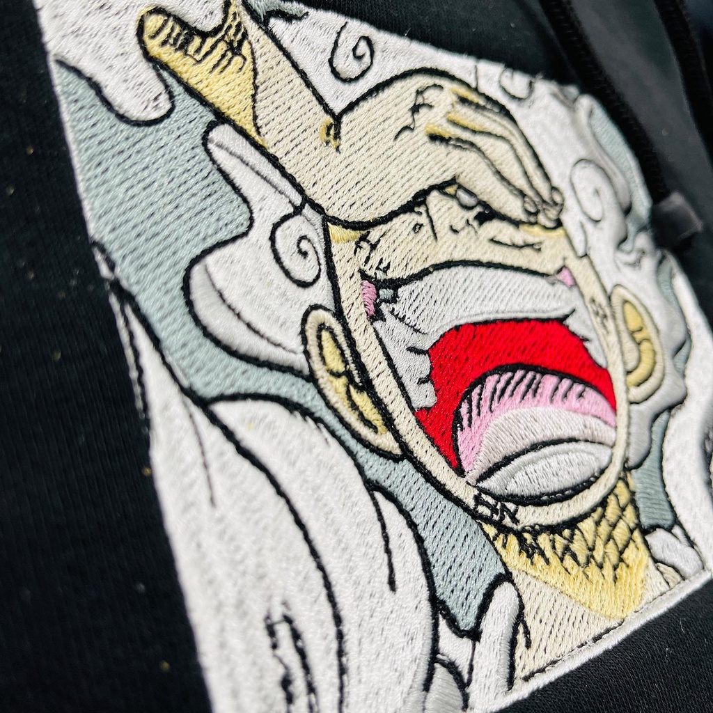 Detail Hoodie Luffy God Nika Embroidery Anime Manga One Piece Premium Unisex