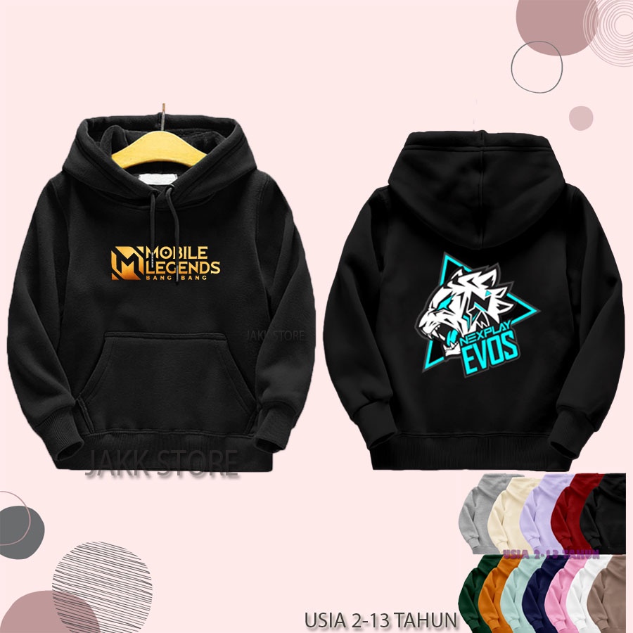 Hoodie ML Anak Laki Laki Keren/Hodie EVOS Anak Anak Usia 2 3 4 5 6 7 8 9 10 11 12 13 Tahun Terbaru/Sweater Switer MOBILE LEGENDS Anak Cowok Hitam