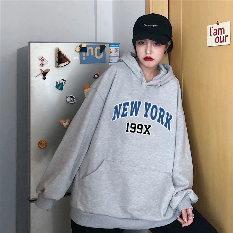 Hoodie New York Wanita Oversize Korean Style Sweater Cewek Murah Tebal Xxl Kekinian Lilac Sweater New York 199x Original Oblong Oversize Wanita Hitam