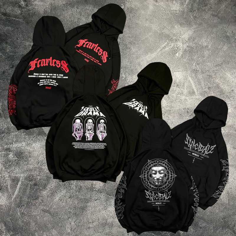 Pakaian Pria > Hoodie & Sweatshirt > Hoodie > Hoodie " SKULL DRAMA & FEARLESS & SUISAD "