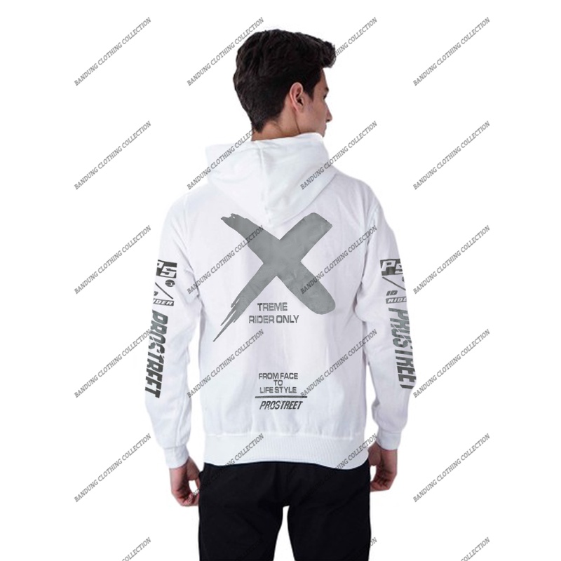 Detail HOODIE SUNMORI PRIA PROSTREET XTREME PUTIH TERBARU BAHAN KATUN HOODIE PROSTREET PUTIH SIZE M L XL XXL