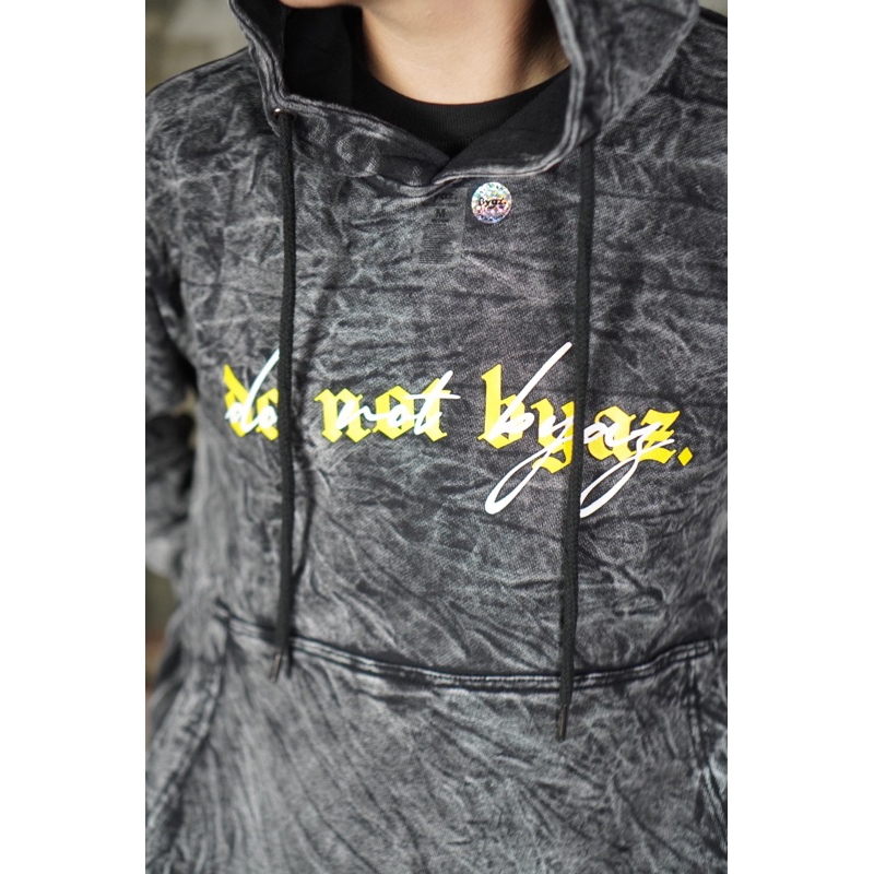 BYAZ HOODIE Material - Cotton Terry Dort 280gsm (tingkat ketebalan, tebal) - Colour black washed - Plastisol Ink Screenprinted graphic at front and back
