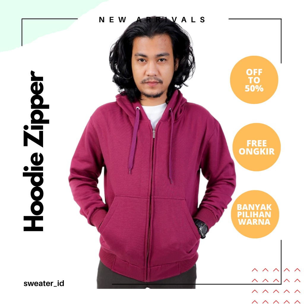 Detail SWEATER_ID Hoodie Zipper Burgundy Polos Pria Wanita Unisex Fleece Tebal Premium