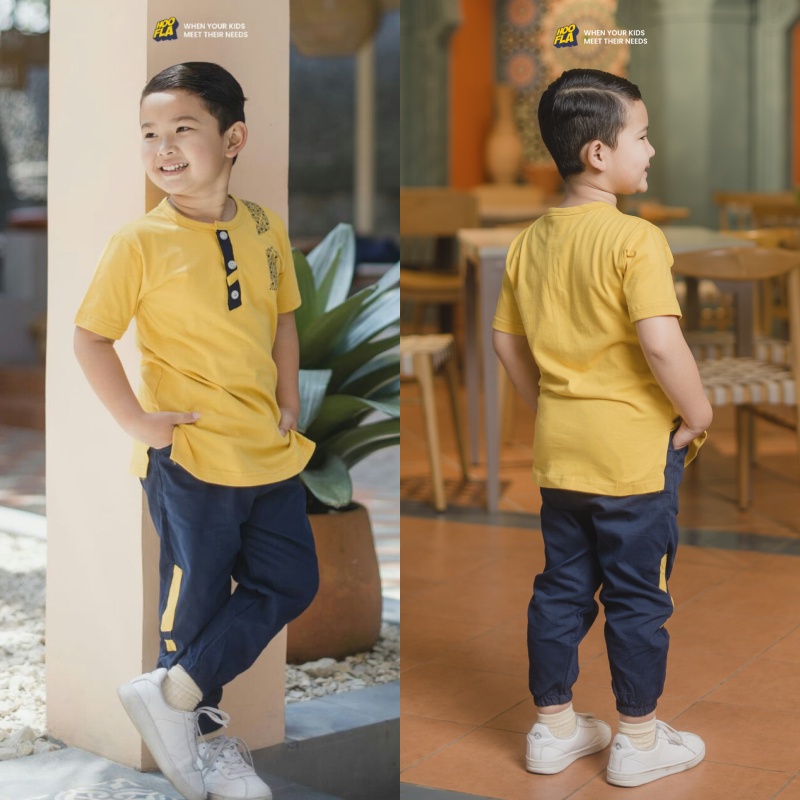 Persembahan terbaru Koko Kaos Anak pertama dari HOOFLA dengan nama FURQAN sebagai 'pembeda' dari set Koko Hoofla lainnya. Berbahan Cotton Combed 24's dengan perpaduan Jogger canvas yang bakal jadi ciri khas koko anak satu ini ========================================= Tersedia 2 pilihan warna : KOJO 01 - Mustard~Navy KOJO 02 - Navy~Sandcastle ========================================= 📌 SIZE| PERKIRAAN USIA| LD X PB X PC