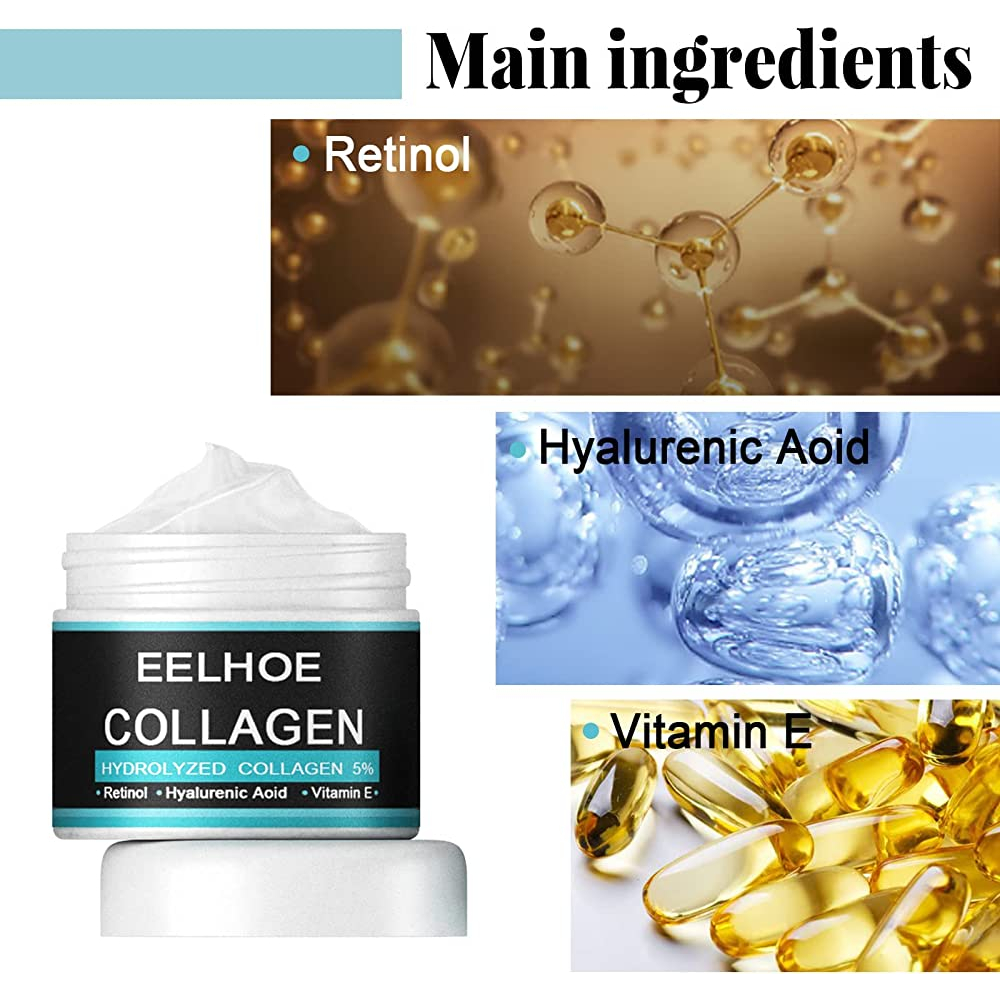 tipe: krim Anti kerut Volume bersih: 10g/15g/30g/50g bahan: kolagen, asam hialuronat Retinol, vitamin E spesifikasi: nutrisi Anti Penuaan, Pelembab, revitalisasi. Krim Pelembab anti Penuaan berkualitas tinggi yang mengandung kolagen melimpah. Collagen beauty cream memberikan elastisitas pada kulit yang membantu kulit yang kuat dan tampak muda. sangat melembabkan dan memelihara kulit, meningkatkan retensi kelembaban kulit, Memperbaiki kekeringan kulit, kasar dan berkilau, membuat kulit lembut, halus, halus dan cerah. asam Hyaluronic dan vitamin E membantu menjaga kulit Anda terhidrasi sepanjang hari, dan mengurangi kedalaman keriput dan garis-garis halus.
