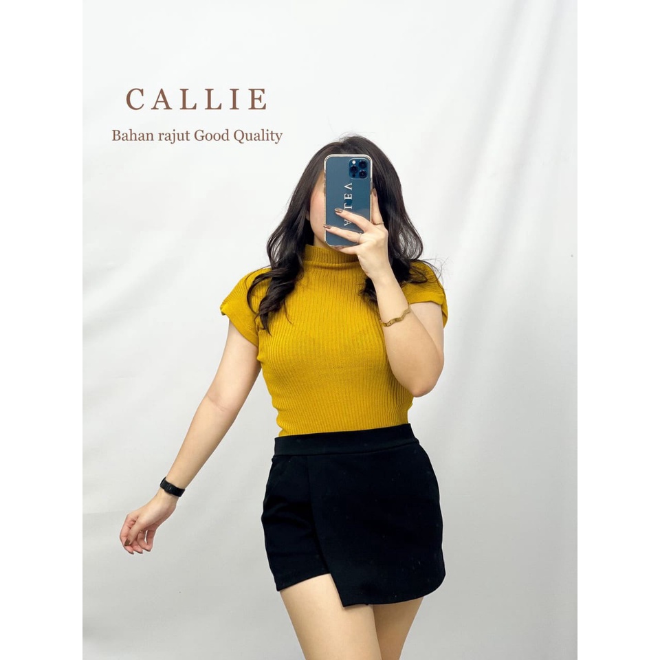 Detail HOPYLOVY - Atasan Wanita Rajut Model Turtleneck Lengan Pendek Cania