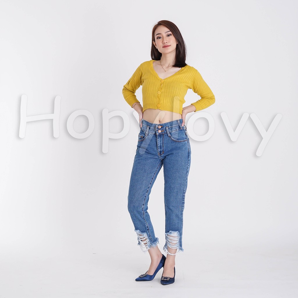 Detail HOPYLOVY - Celana Jeans Boyfriend Wanita BF Loraine