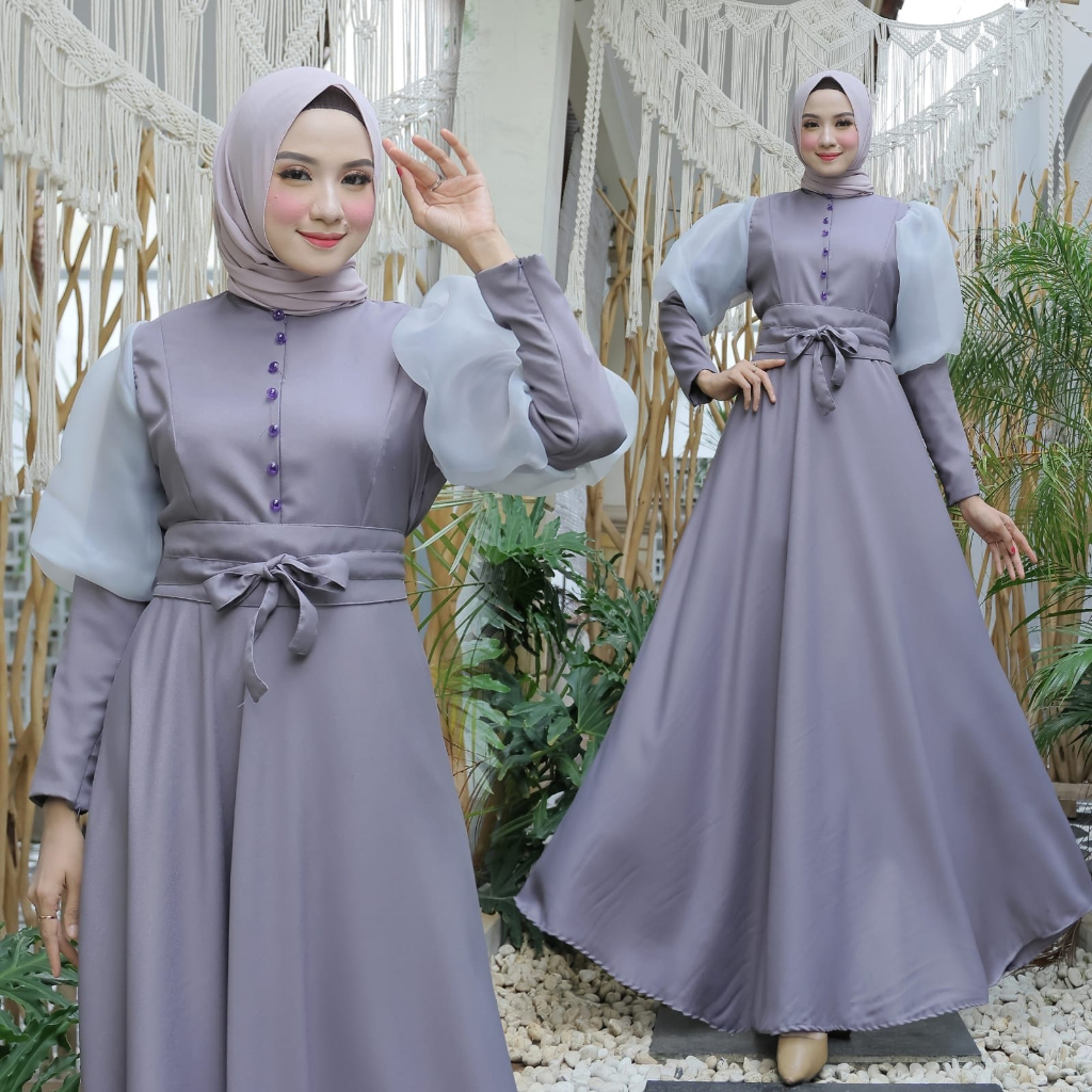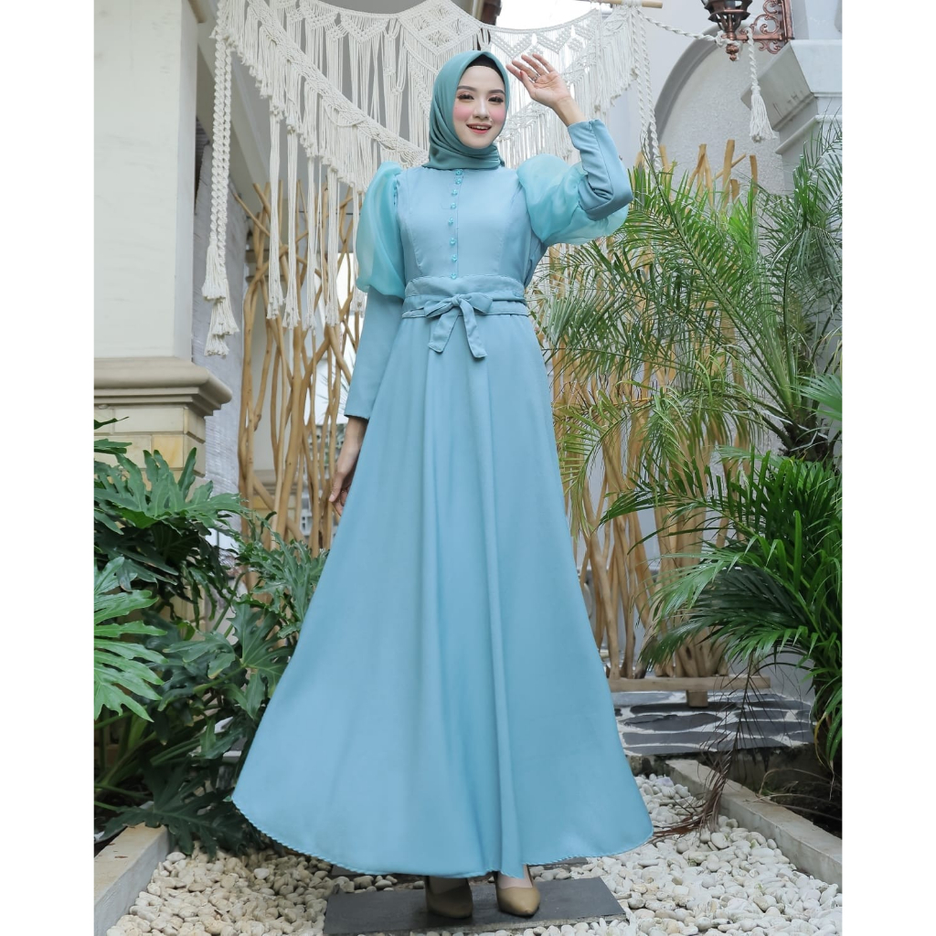 HOPYLOVY Gamis Maxi Dress Casandra Lengan Balon bahan Moscrepe