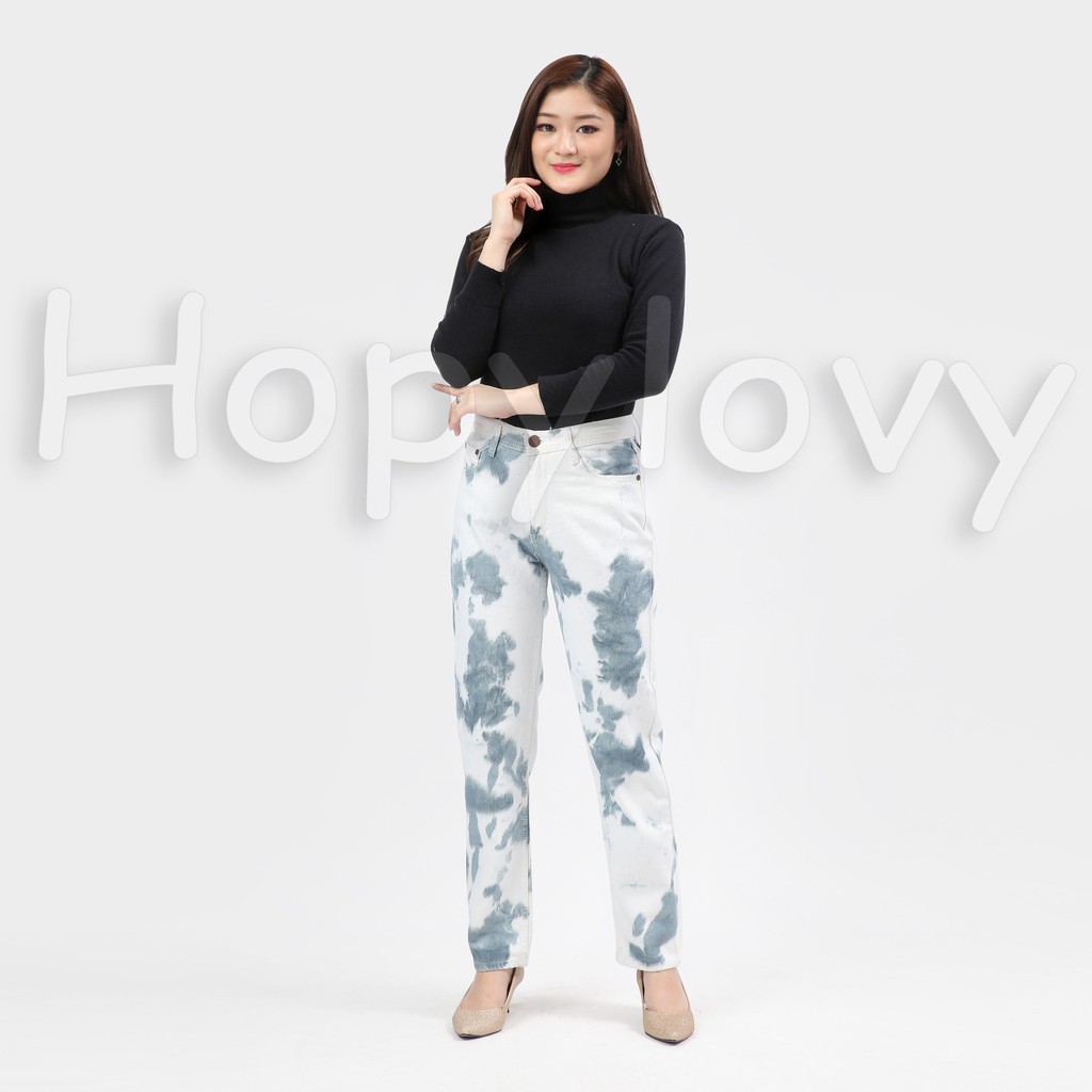 Detail HOPYLOVY SALE - Celana Boyfriend Jeans Wanita Motif Tie Dye Tirani