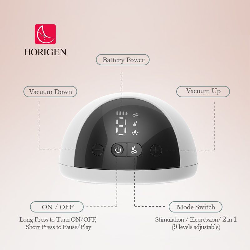 Fitur: 1. Portabel / handsfree model, pompa Asi handsfree yang tidak memiliki selang. Kenakan di dalam bra Anda, ringan, dan handsfree. 2. Charger dengan USB Tipe-C Pompa Asi memiliki baterai 1300mAH yang dapat diisi Lang. Anda dapat menggunakan adaptor 5V-2A untuk menghubungkan kabel USB untuk pengisian daya. Atau gunakan pengisi daya mobil, komputer atau power bank untuk mengisi dayanya. 3. Layar tampilan LED Digital hitam mewah dengan warna putih klasik Layar LED yang dapat menunjukkan level dan mode saat pumping, dan dapat melihat sisa baterai. 4. Mode Massage (Stimulasi), mode perah (expresion) dan Mode 2 in 1, Horigen memiliki 3 mode: Stimulasi, Ekspresi dan mode 2 in 1. Setiap mode memiliki 9 tingkat yang dapat disesuaikan. Nyaman untuk pengosongan payudara ibu dan efektif. Mode 2 in 1 dapat berubah otomatıs 2 menit utama Massage dan 28 menit selanjutnya expression, yang dapat meningkatkan ASI mommy dan memperbanyak LDR. Cukup tekan "+" atau "-" untuk menaikan atau menurunkan kekuatan hisap sesuai dengan kenyamanan mommy. 5. Silent mode Pompa asi yang sangat tenang, dengan tingkat kebisingan 50dB Dan Anda dapat menggunakannya di mana pun Anda berada. 6. Desain sistem Back-flow Mencegah ASI mengalir kembali ke mesin motor. 7. Dilengkapi dengan ukuran 25mm untuk breastshield dan 2 silicone insert (21mm dan 17mm) breast shield silicone berukuran 25mm, yang cocok untuk bent nipple mommy. Jika Anda membutuhkan ukuran yang lebih kecil, Anda dapat memasukkan insert 17mm atau 21mm ke dalam breastshield 25mm. (Dalam kamaşan sudan terdapat 1 pc 17mm dan 1 pc sisipan bantal 21mm.) 8. komponen aksesori yang dapat dilepas dan di rakit untuk memudahkan pembersihan anda dapat menggunakan sabun cuci botol khusus bayi untuk mencuci aksesori (kecuali mesin). Aksesori dapat disterilkan dengan mesin steril UV dan uap, dan Untuk sterilisasi uap disarankan tidak melebihi 30 detik. Catatan: mesin motor pompa tidak dapat dicuci dan tidak di steril! 9. Bahan silikon & Tritan & PP Food grade, bebas BPA Semua part mengunakan bahan food grade, mommy bisa menggunakannya tanpa khawatir. Suhu tidak boleh melebihi 110℃, Terutama botol Tritan.