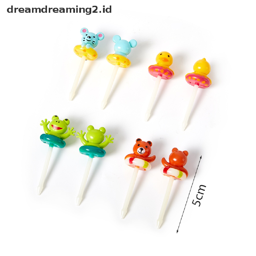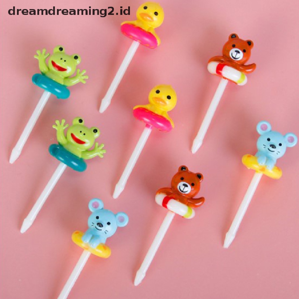 Detail (hot) 8pcs Kartun Hewan Buah Garpu Fruit Stick Lunch Stick Kue Garpu Makanan Garpu Stick//