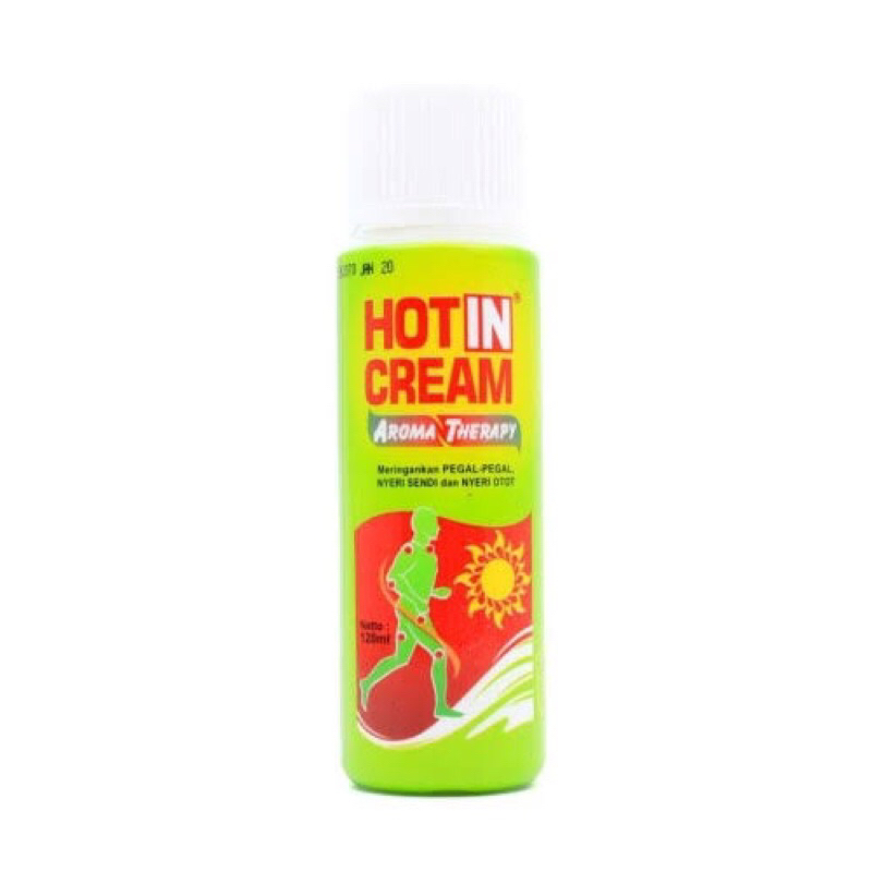 HOT IN CREAM Untuk membantu meringanka pegal-oegal, nyeri sendi, nyeri otot, masuk angin, perut kembung, dan sakit kepala. Diformulasikan dalam basis cream, nyaman dipakai, panasnya pas, mudah meresap, tidak lengket dikulit, dan tidak mengotori baju.