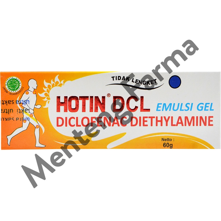 Hotin DCL indikasinya berbeda dengan Hotin yang lain, Hotin DCL merupakan emulsi gel yang cocok untuk meredakan nyeri sendi, sakit pinggang, rematik, linu dan kram. Hotin DCL adalah emulsi gel pereda nyeri yang efektif mengobati kram, pegal linu, nyeri sendi dan rematik. Hotin DCL mengandung bahan aktif diclofenac yang bekerja ke pusat rasa sakit dan meredakan kram, pegal linu, nyeri sendi dan rematik. Setelah bahan aktif terserap kedalam kulit, obat ini memberikan efek antiinflamasi (anti radang) berdasarkan efek penghambatan sintesis prostaglandin setempat. Berdasarkan efek antiinflamasi (anti radang) nya, obat ini meredakan edema (bengkak), kemerahan, memar jaringan dan nyeri (rasa sakit).