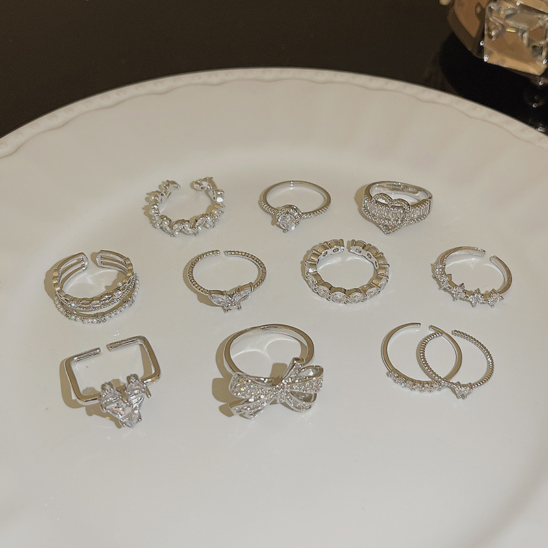 Detail Hot Jual Mewah Zirkon Kupu-Kupu Cincin Koleksi Pembukaan Adjustable Jari Telunjuk Cincin Perhiasan Tangan Perempuan