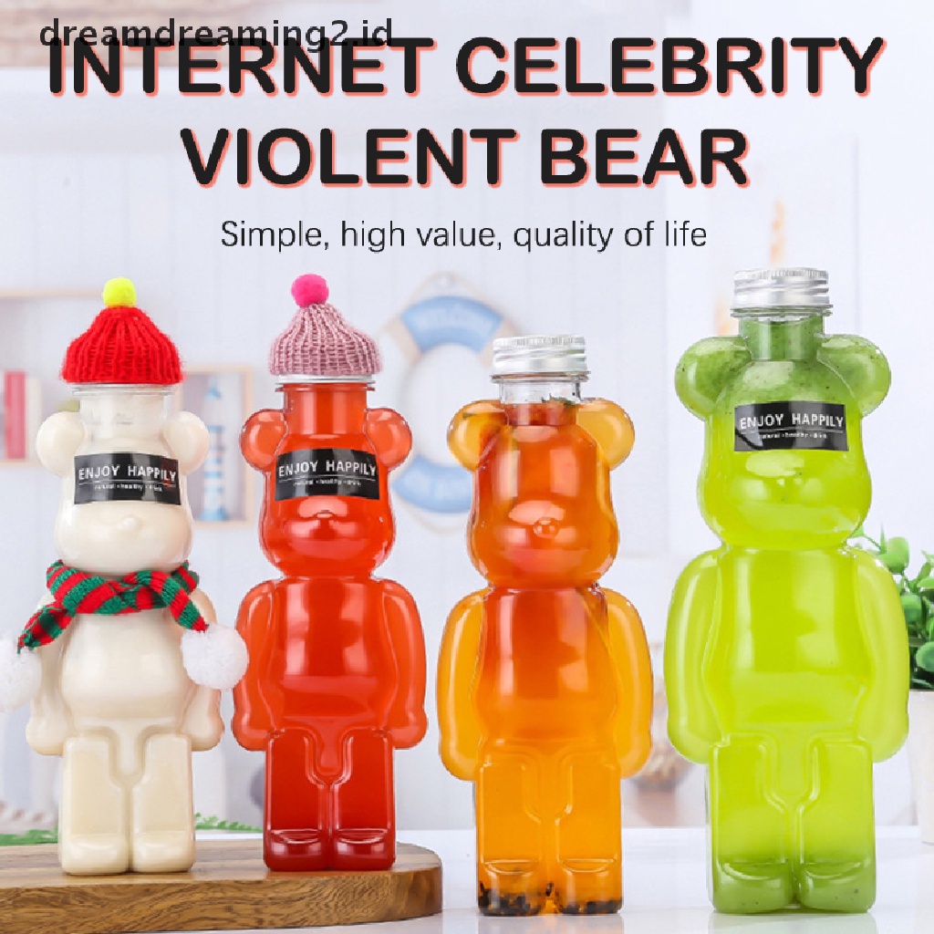Perlengkapan Rumah > Peralatan Masak > Alat & Dekorasi Baking > (hot) Kartun Botol Teh Susu Wayang Beruang Berbentuk Transparan Menebal Botol Jus Kreatif Wayang Beruang Kekerasan Cangkir Susu Teh Milk Cup Water Bottle Botol Air Lucu//