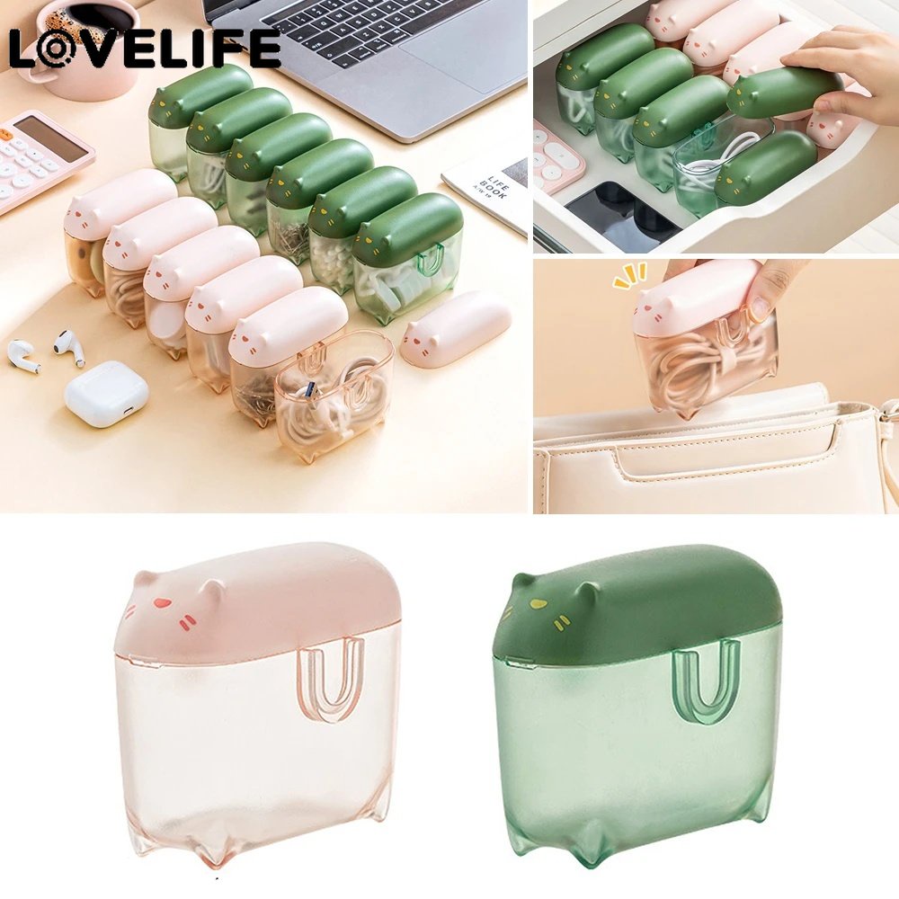 Detail Hot Sale/Kotak Penyimpanan Kabel Data Kartun Lucu Compact Charging Cable Box Portable Phone Charger Organizer Desktop Kotak Penyimpanan Gadget Tahan Debu Pembatas Laci Rumah Hemat Ruang
