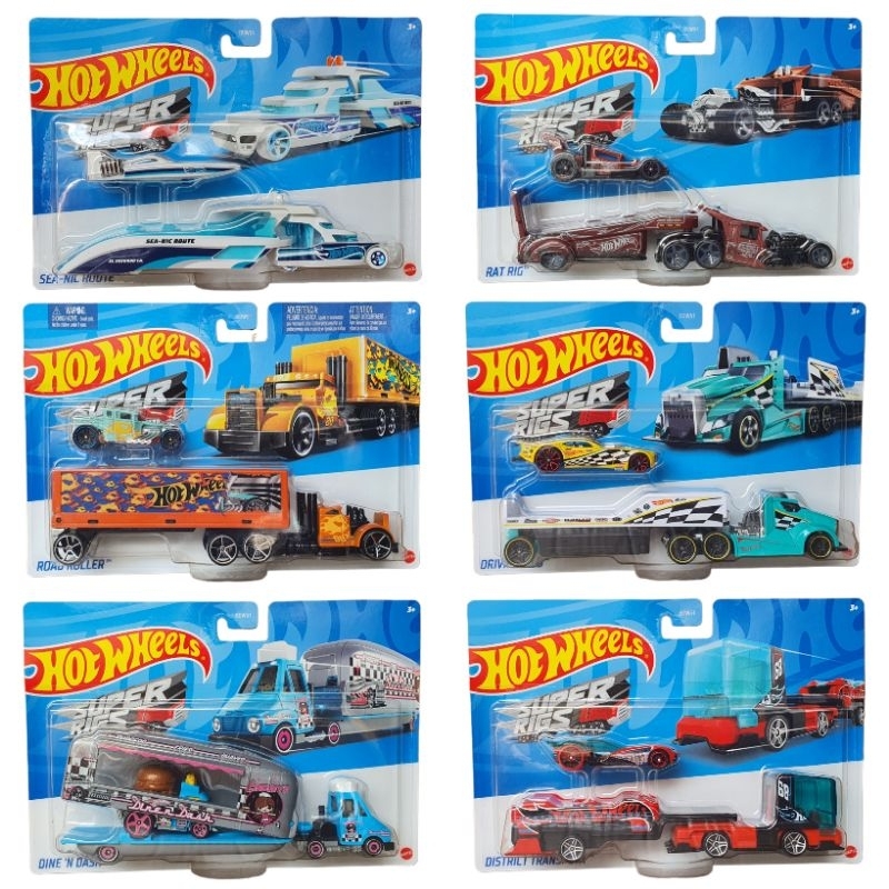 - Product Hot Wheels ini authentic dan authentic by Mattel Inc.(Guarantee). - 1:64 scale diecast vehicle - Product dimension 6 x 4 x 0.2 inches - Manufacturer recommended age 5 years and up - Includes a truck trailer and a vehicle with instructions