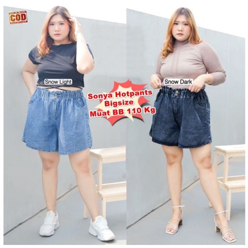 Detail HOTPANTS JEANS JUMBO SONYA HOTPANTS JUMBO BB 110 KG | CELANA JEANS PENDEK HIGHWAIST WANITA SUPER JUMBO | Fashion Hits Kekinian OOTD Viral Terbaru