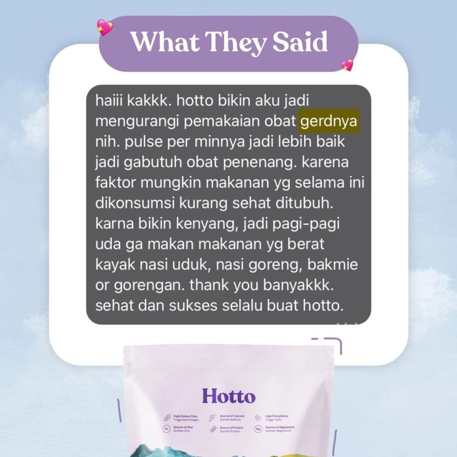 Hotto Purto adalah superfood multigrain dengan ubi ungu yang diformulasikan secara khusus agar Anda dapat memulai pola makan sehat penuh nutrisi dengan lebih praktis setiap hari