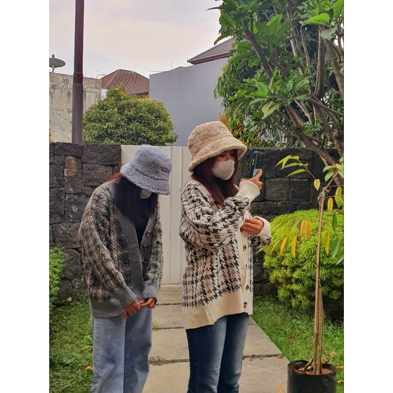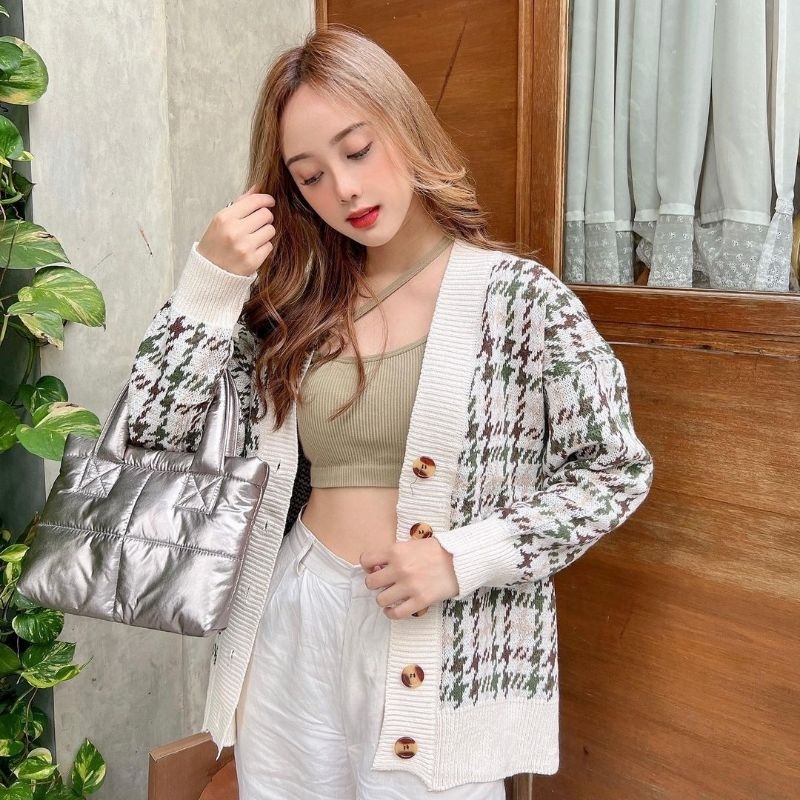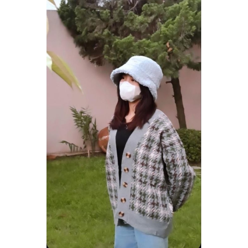 Pakaian Wanita > Sweater & Cardigan > HOUNDSTOOTH KNIT CARDIGAN WINTER AUTUMN IMPORT KARDIGAN RAJUT WANITA KOREAN STYLE