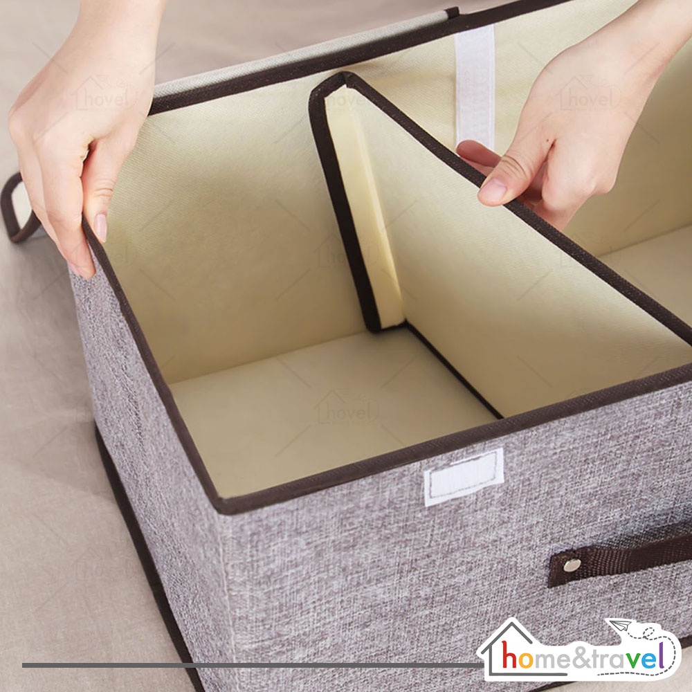 Material : Cotton Fabric - Tersedia warna : 1. Abu-abu 2. Cream - Tersedia 2 ukuran : kecil dan besar - Bisa dilipat - Tempat menyimpan baju, mainan anak, buku dll - Cocok untuk rumah dan kantor - Terdapat perekat jenis velcro pada penutup - Ukuran kecil : 26 x 24 x 16 cm - Ukuran besar : 50 x 30 x 25 cm