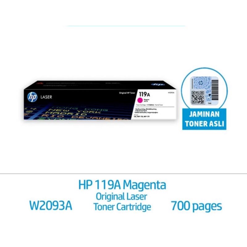 HP Toner Laserjet 119A: - Black = W2090A - Cyan = W2091A - Yellow = W2092A - Magenta = W2093A