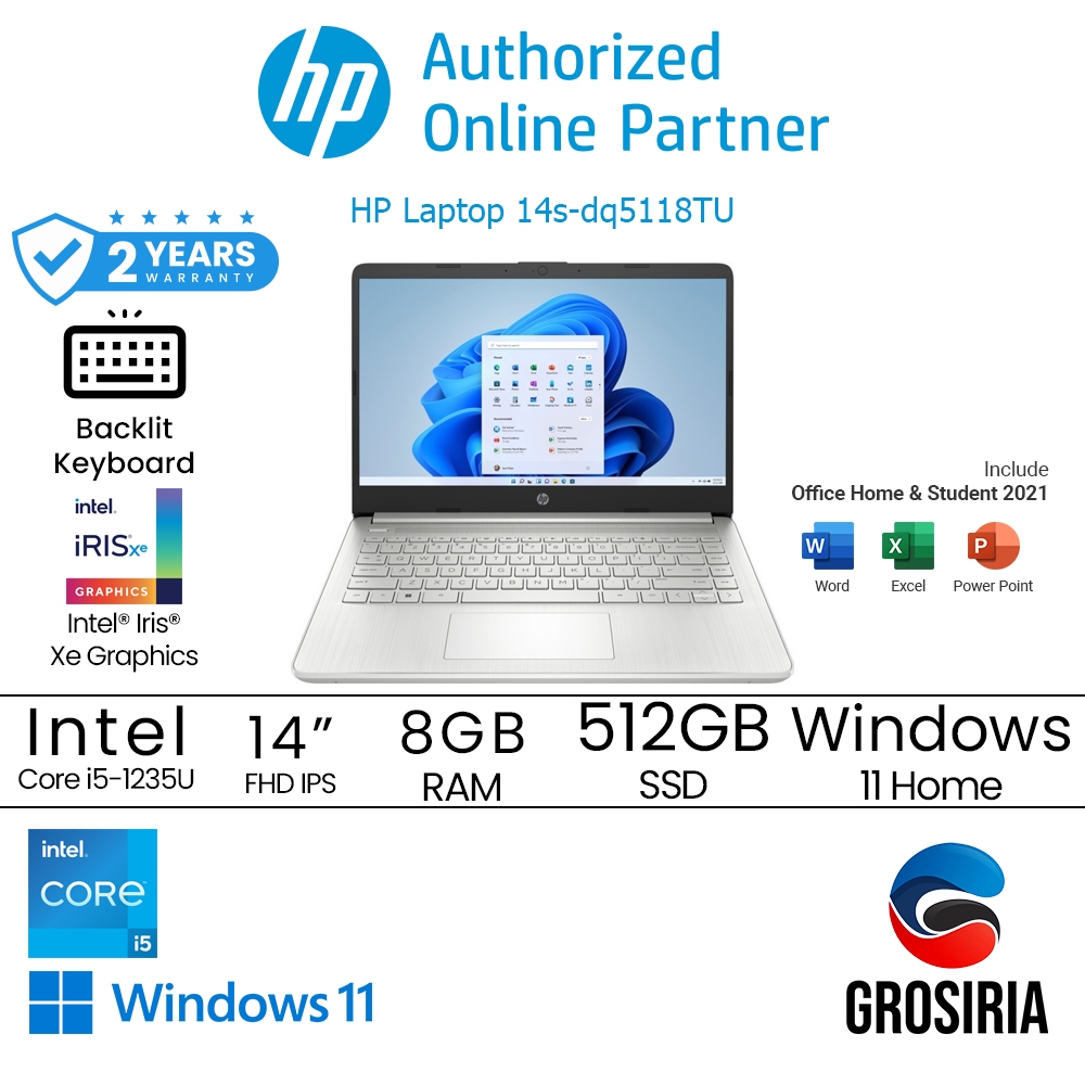 HP Laptop 14S DQ5118TU Intel Core I5 1235U 8GB 512GB WIN11 8T481PA Color : Silver