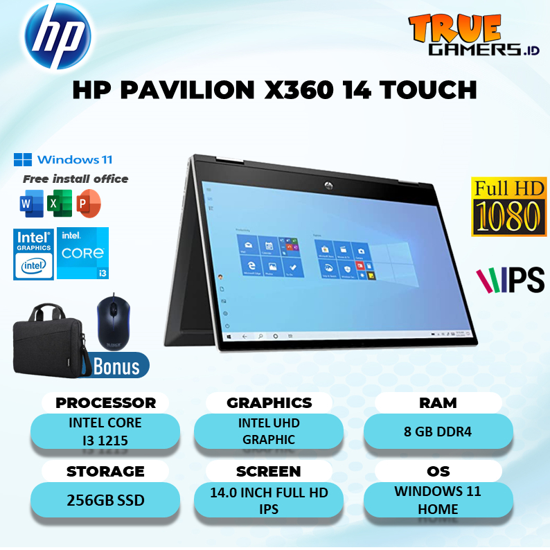 Detail Laptop HP Pavilion X360 14 Touch CORE 5 120U 16GB 512GB W11+OHS 14.0FHD IPS GARANSI RESMI