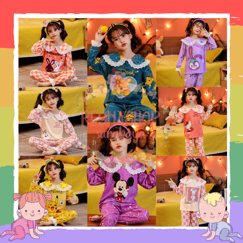 Detail (HR-HY) Setelan Baju Tidur Piyama Anak Perempuan Panjang Import 4-9th