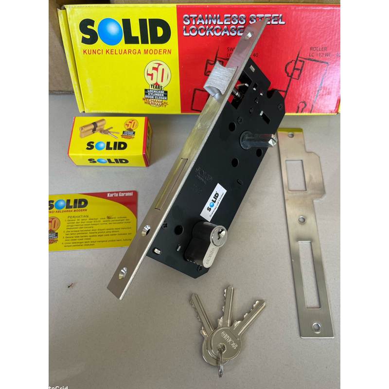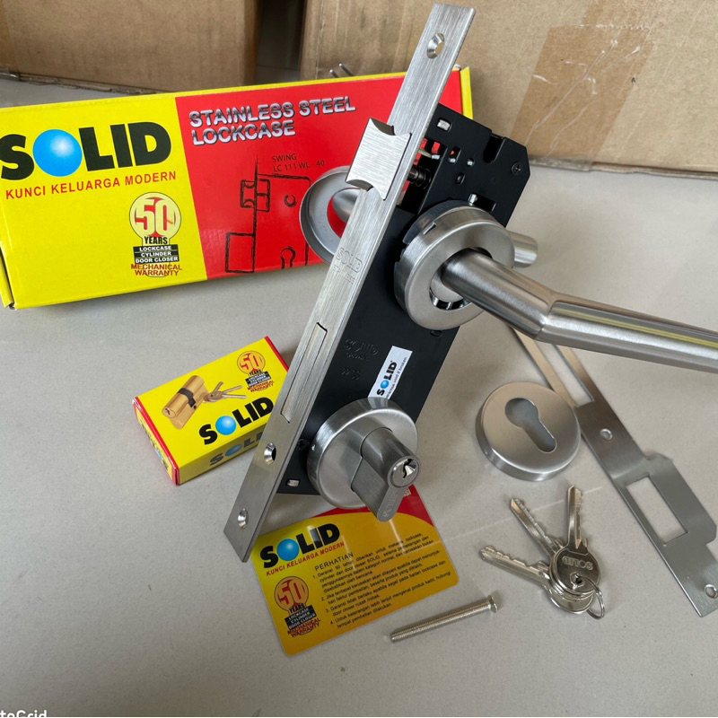 Kunci pintu model pisah terdiri dari 1 set handle pisah bhn stanlis steel sus 304 + tutup kunci merk solid 1 pcs body swing originl solid 1 pcs silinder kunci merk solid garansi mesin body 50 tahun