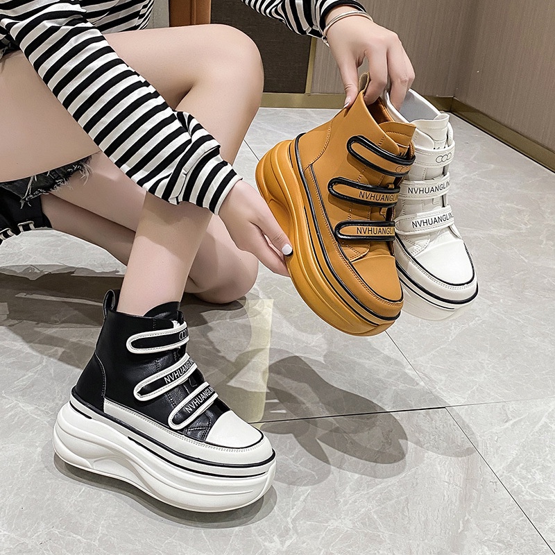 Detail GRATIS BOX HS - 0296 Sepatu Sneakers Tinggi Fashion Wanita Trendy Korean Shoes Casual Style Import