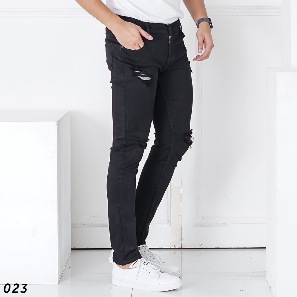 Kelebihan Produk: - Bahan stretch diseluruh bagian celana jeans - Lentur dan nyaman dipakai (karna bahan strech size bisa lebih fleksibel dan nyaman di pakai) - Motif sobek jadi terlihat lebih casual - Size sesuai standard size orang Indonesia