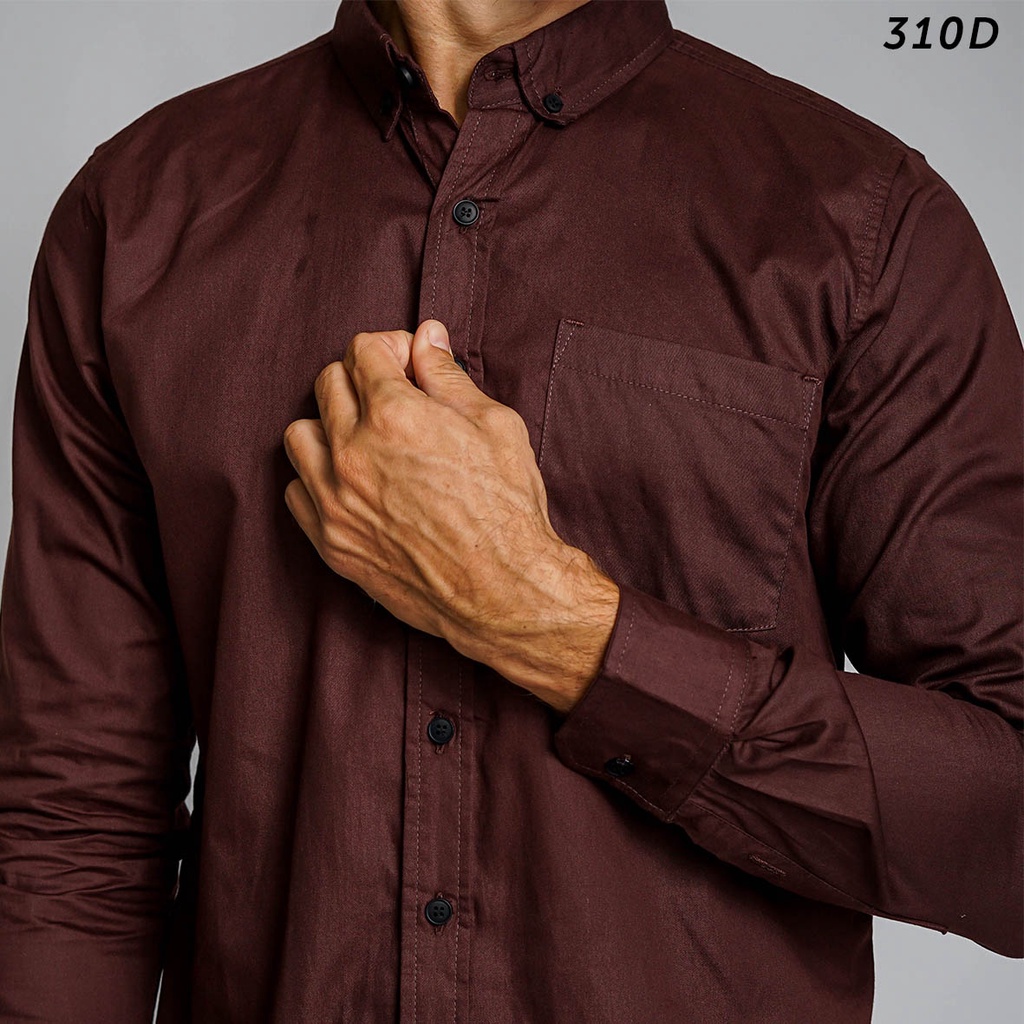 Detail HSRM Kemeja Polos Pria Coklat Lengan Panjang Totti Shirt 310 D