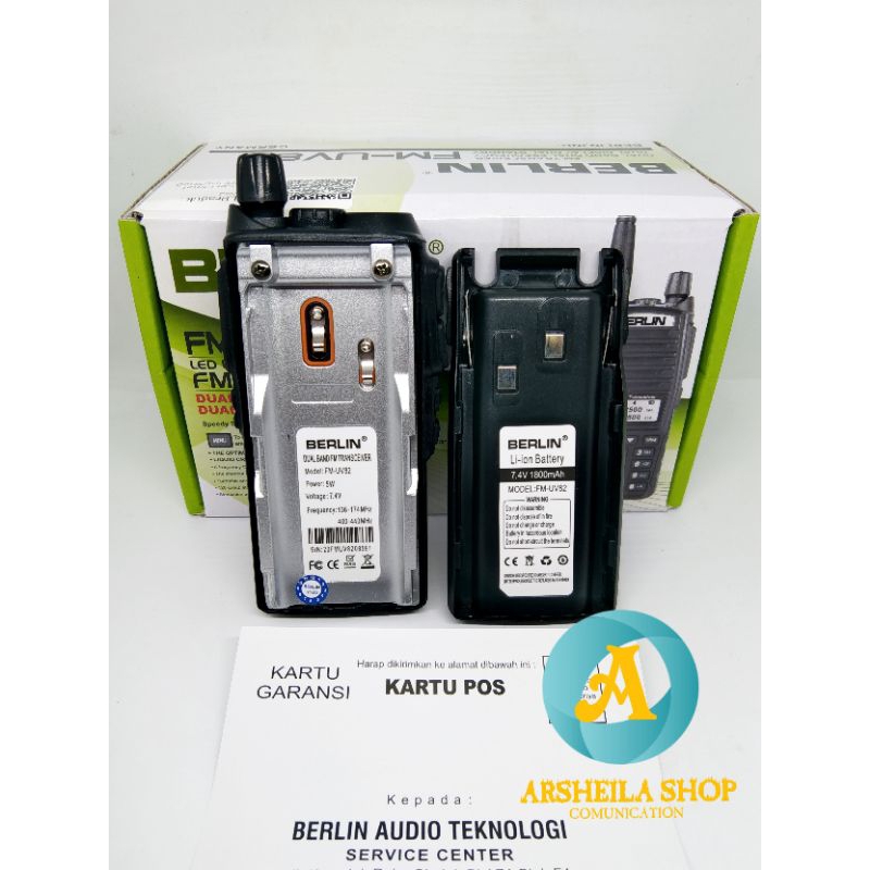HT BERLIN UV82 (Original Product garansi Resmi 1 Tahun Servis) Frekuensi :Dual band Vhf. :136-174mhz Uhf. :400-470mhz Fm radio :68-105mhz Power. :5watt FM Radio ctcss/dtcss function simlex & duplex