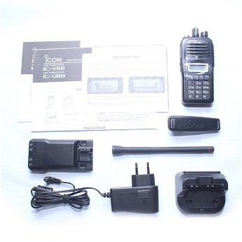 Fitur ICOM IC-V88 Radio Profesional Ringkas dan Tahan Air IP67 Perlindungan Tahan Air dan Kedap Debu 800mW Clear Companded Audio dengan Speaker 36mm Besar Daya Output 5,5W yang Kuat 10,5 Jam Waktu Pengoperasian dengan Baterai Tahan Air yang Disediakan 128 Saluran Memori Tampilan Alfanumerik 8 Karakter Encoder/decoder CTCSS dan DTCS bawaan 8 Memori Panggilan Otomatis DTMF MDC 1200 PTT ID dan 100 Alias Memori Pengacak Suara Inversi (16 Kode) untuk Percakapan Pribadi Pengumuman Saluran dari Nomor Saluran Pengoperasian Tujuh Tombol yang Dapat Diprogram dengan Fungsi Tombol Shift
