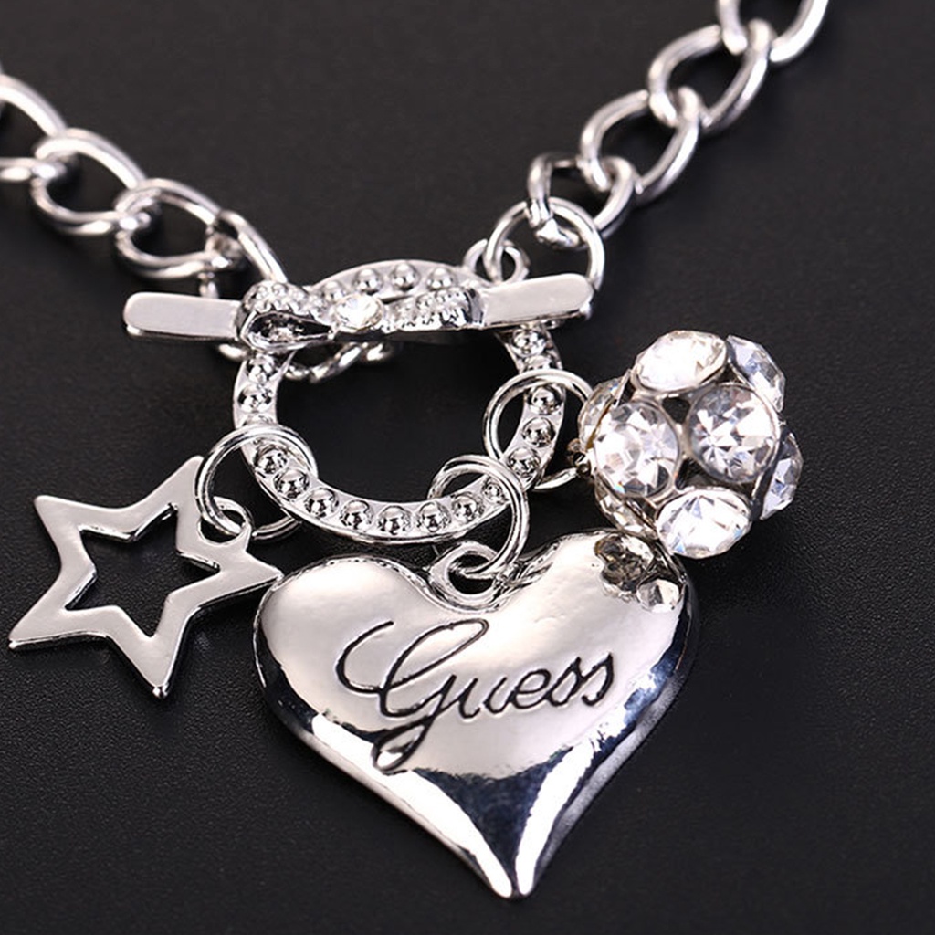 ♡♡♡Selamat datang di toko kami, harap Anda senang berbelanja!♡♡♡ Spesifikasi: Terbuat dari bahan berkualitas tinggi, produk ini ringan dan nyaman dipakai. Bintang unik dan liontin hati terukir memungkinkan Anda untuk menonjol dari kerumunan. Berlian imitasi berkilau menambah pesona Anda. Gelang dapat digunakan dengan pakaian yang berbeda, akan terlihat sempurna.