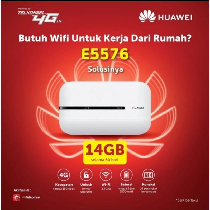 Huawei E5576 Modern Mifi 4G LTE Unlock Gratis Telkomsel 14Gb 2 Bulan