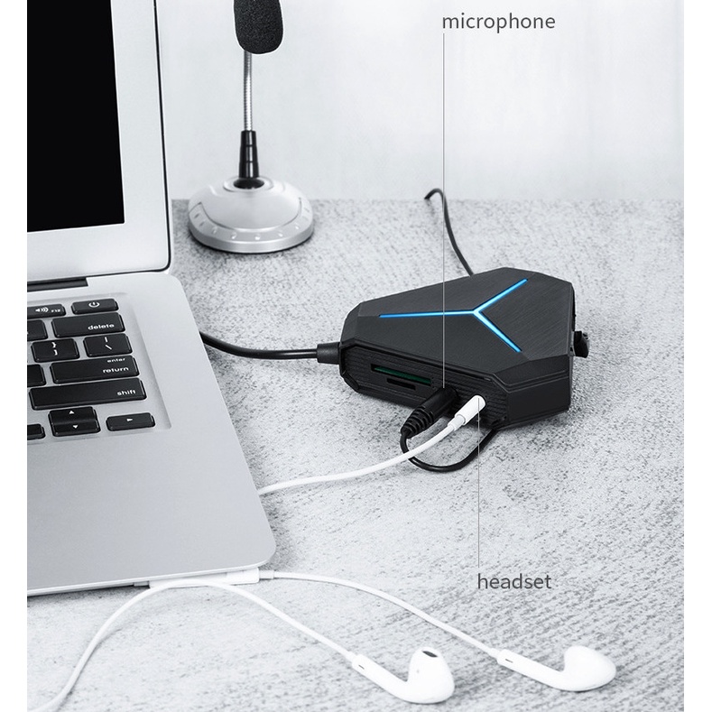 Komputer & Aksesoris > Aksesoris Desktop & Laptop > USB HUB & Card Reader > Hub USB Multifungsi Hub USB 6port (3Port USB3.0+3Port USB+TF/SD Card+Port headset+MIC Port) Support PD Fast Charge