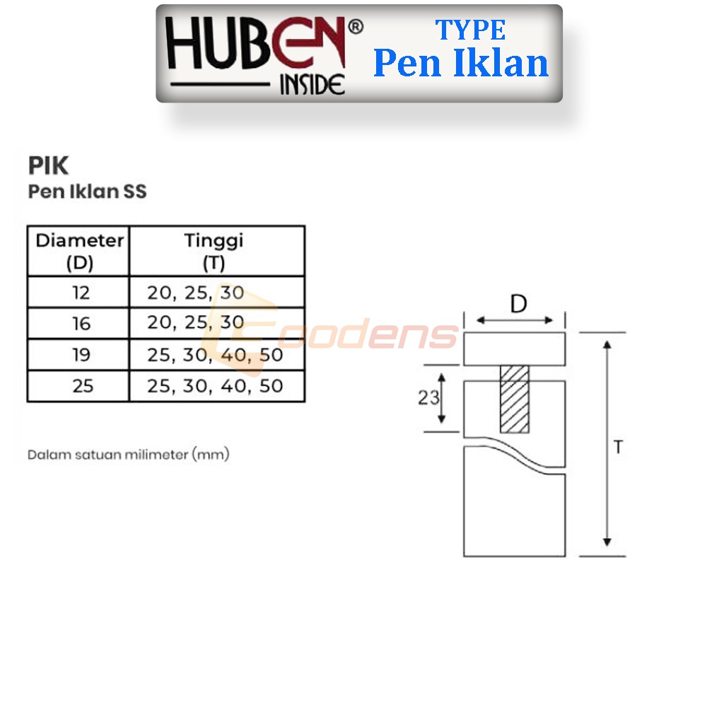 Detail Huben PIK 16-30 Pen Iklan Baut Sekrup Kaca Akrilik Sign Board Huben PIK 16-30 Pen Iklan Baut Sekrup Kaca Akrilik Sign Board