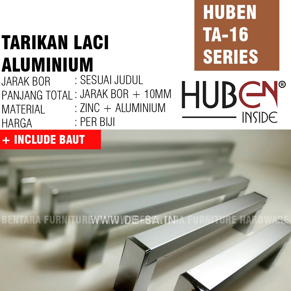 Detail Huben TA-16 128 Mm - Handle Tarikan Laci Pintu Kabinet Minimalis Zinc Aluminium Chrome Anodized Meja Lemari Kabinet (Sekitar 12 - 13 - 14 cm )