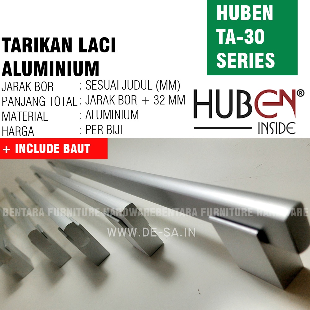 Huben TA-30 192 MM - Tarikan Laci Meja Lemari Kabinet Gagang Pintu Handle Aluminium Anodize Meja Lemari Kabinet (Sekitar 19 - 20 - 21 - 22 cm )