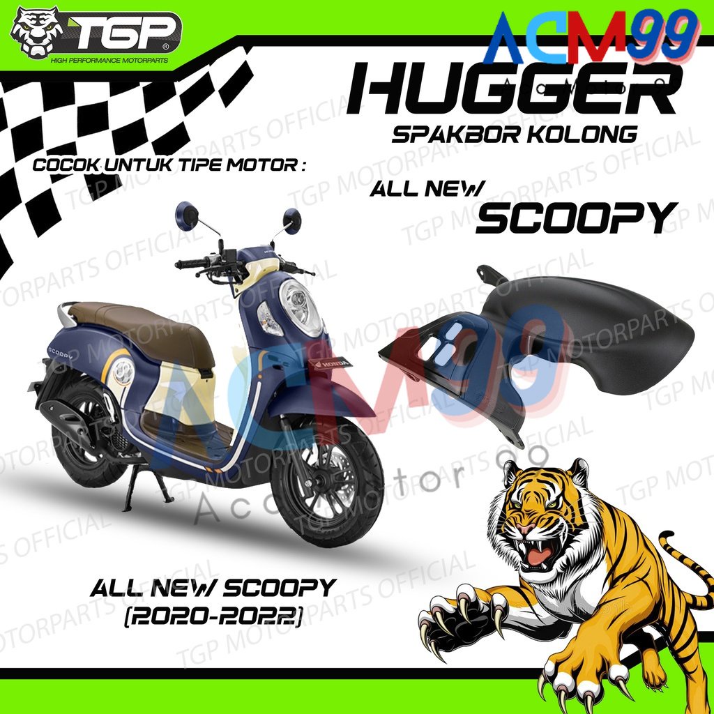 Membersihkan Motor jadi Lebih Mudah!! Spakbor Kolong Hugger All New Scoopy, dengan memakai Hugger pada motor Scoopy kakak membuat kolong motor lebih bersih sehingga mencuci motor akan lebih mudah dan lebih cepat. Hugger TGP dirancang dengan menggunakan plastik tebal sehingga akan tahan benturan terhadap batu-batuan yang terlontar dari ban pada saat berkendara (Kuat dan tidak mudah pecah).