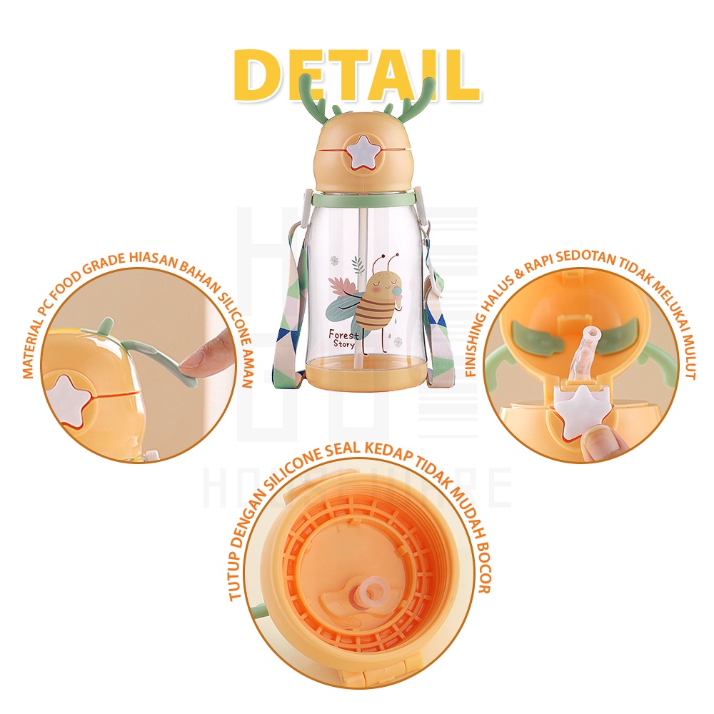 Detail HUGO Botol Minum Anak Tanduk Rusa dengan Tali Sedotan Botol Anak Lucu 600 ml Anti Tumpah Anti Pecah
