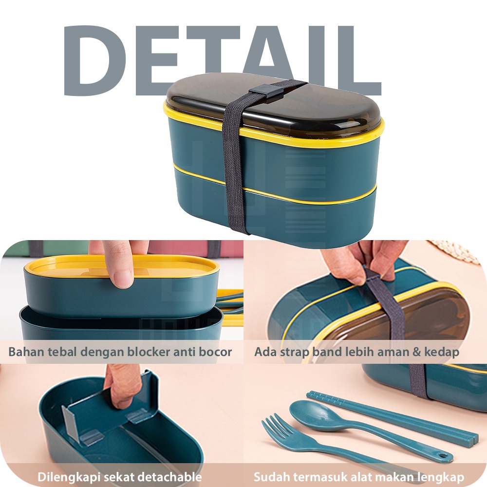 Detail HUGO Kotak Bekal Makan Siang Lunchbox 2 Layer 700 ml Free Alat Makan Tempat Makan Set