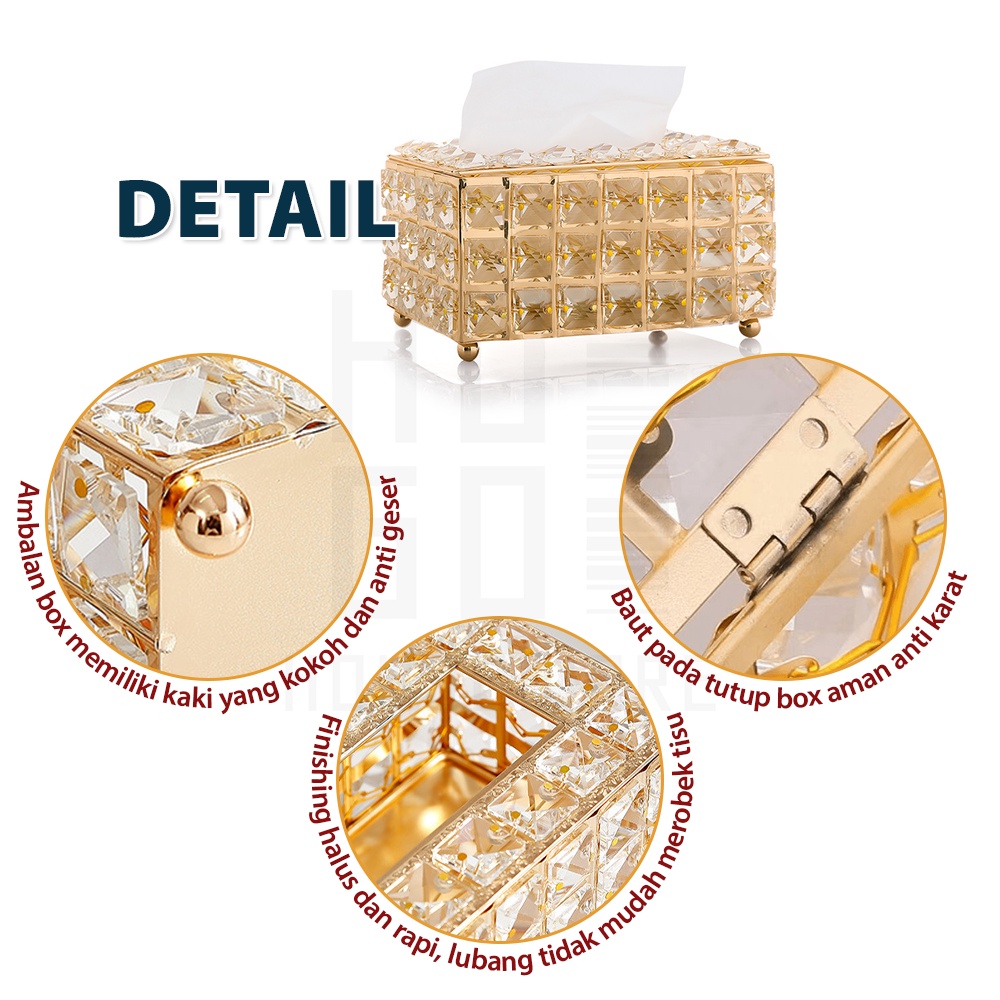 Detail HUGO Kotak Tisu Tempat Penyimpanan Tisu Kristal Premium Wadah Tissue Emas Mewah