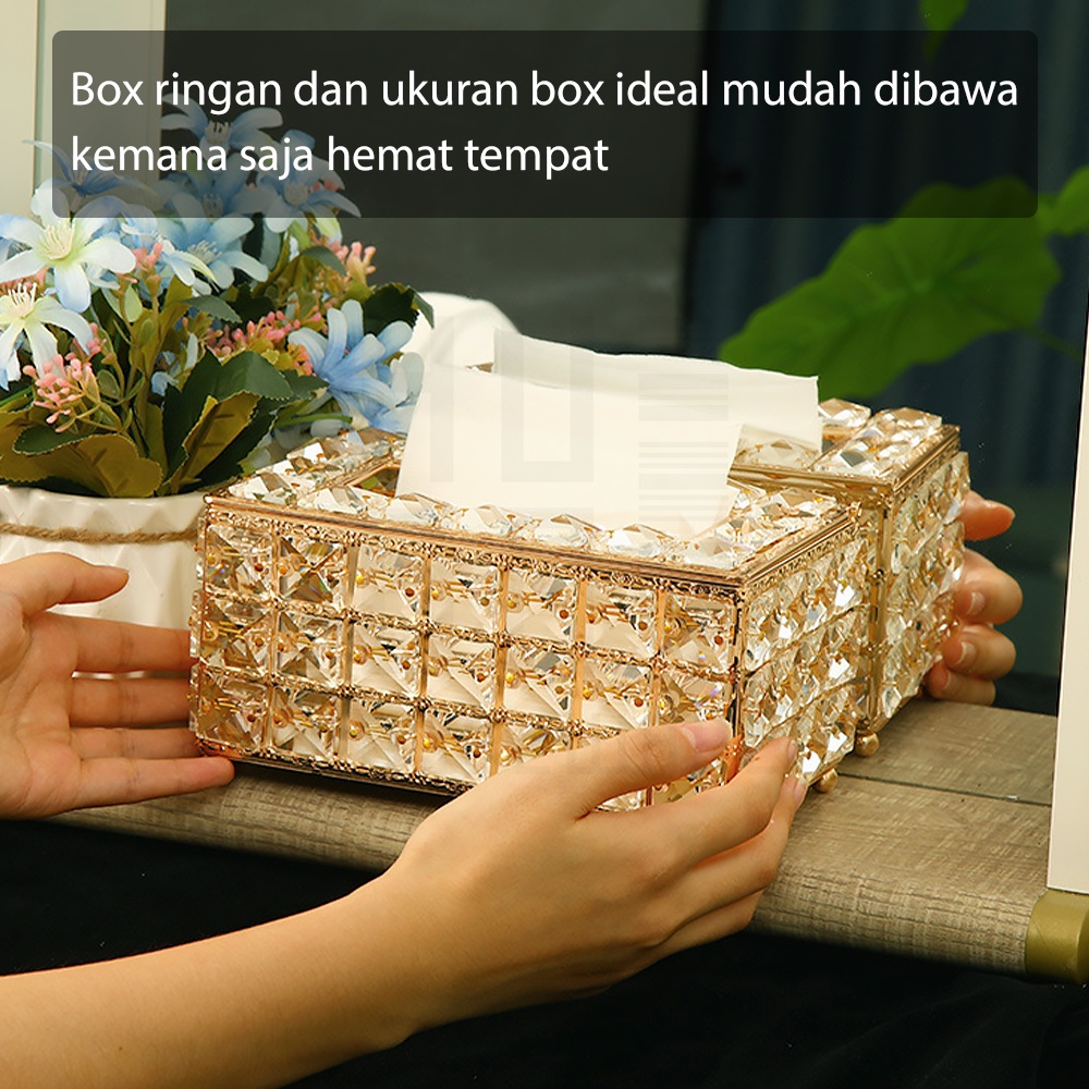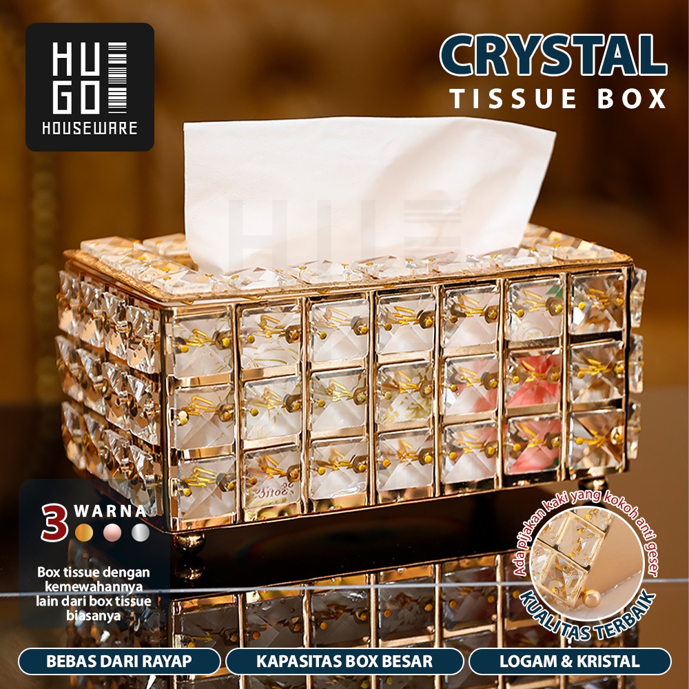 HUGO Kotak Tisu Tempat Penyimpanan Tisu Kristal Premium Wadah Tissue Emas Mewah