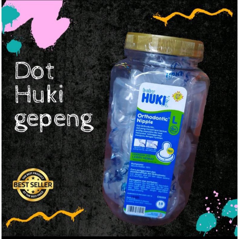 HUKI DOT ORTHODONTIC SILICONE NIPPLE size S M L DOT GEPENG Dot Orthodontic, dot yang menyerupai bentuk puting payudara ibu saat menyusui, sehingga bayi menyusu dengan nyaman. Komposisi : Silicone Rubber 100% Size S untuk 0-3 Bulan Size M untuk 3-6 Bulan Size L untuk 6 Bulan keatas Cara penggunaan dan membersihkan : Cuci dengan sikat dot dan rebus selama 3-5 menit agar steril.
