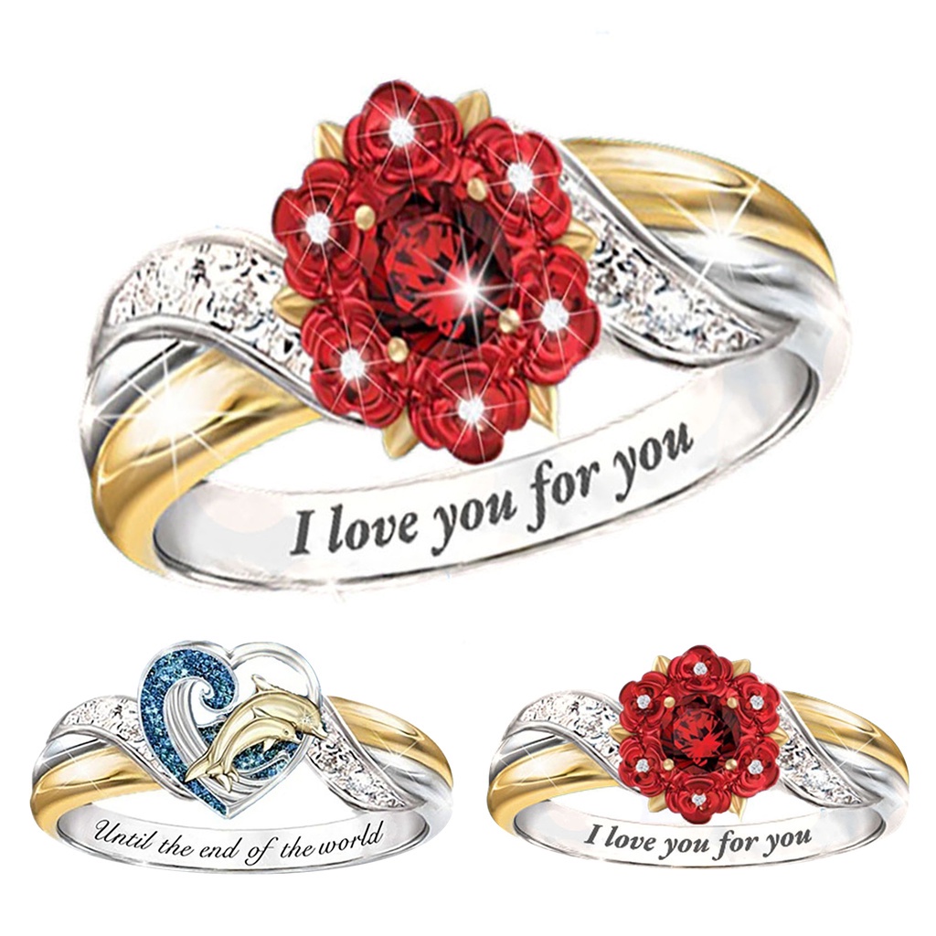 Description: Heart-shaped with rhinestone inlaid design, the ring is shiny, anti-corrosion, non-fading and wear resistant. Dolphin love heart ring and rose rhinestone ring is so beautiful and meaningful which is suitable for anniversary and Mother's Day. It is made of high quality alloy material. There are five sizes about the ring. It is suitable for birthdays, engagement, shopping, dating, work, beach, party, outdoor, daily wear, etc.