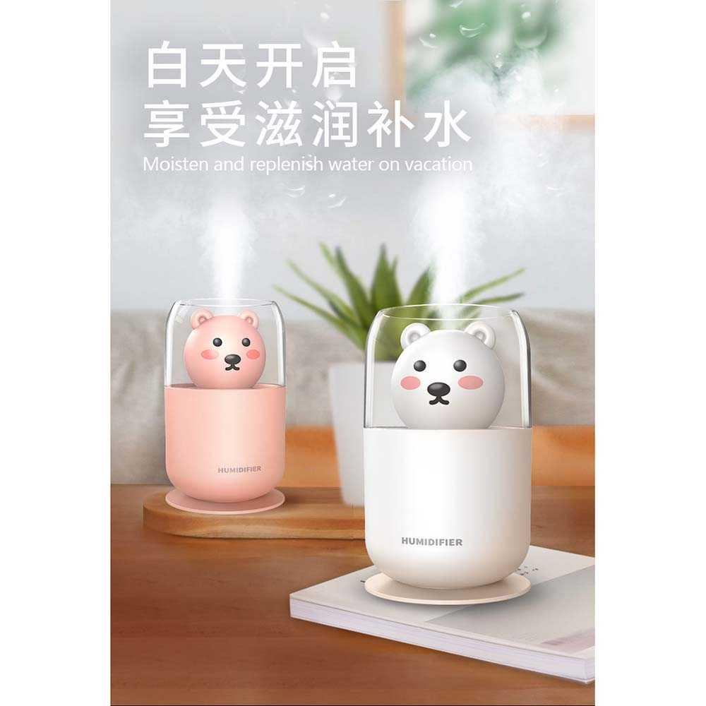 Package Contents Barang-barang yang Anda dapat dalam kotak produk: - 1 x THE BEAR Humidifier Pelembab Udara Aromatherapy Oil Diffuser Cute Design 300ml - Y06 - 1 x Kabel Charger USB - 1 x User Manual